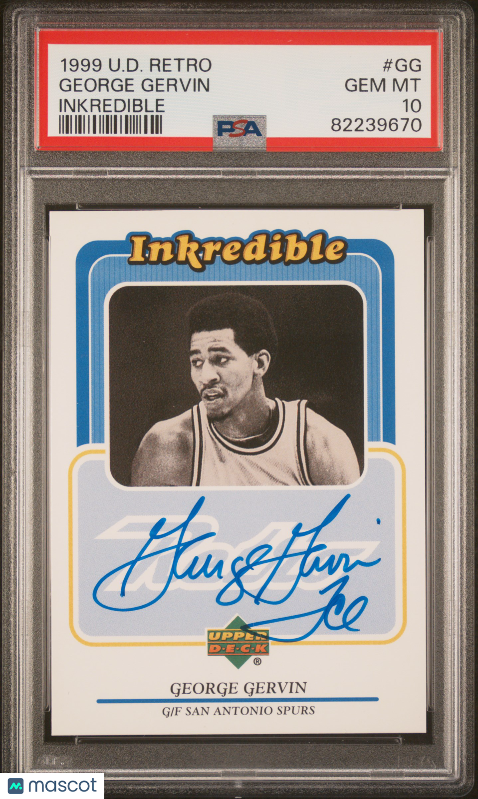 You are purchasing a 1999 Upper Deck Retro Inkredible George Gervin #GG Sign Gem Mint Autograph Highest Pop Low Pop PSA 10. You will receive the exact item in the photographs. Thank you for looking. Listed With Mascot.