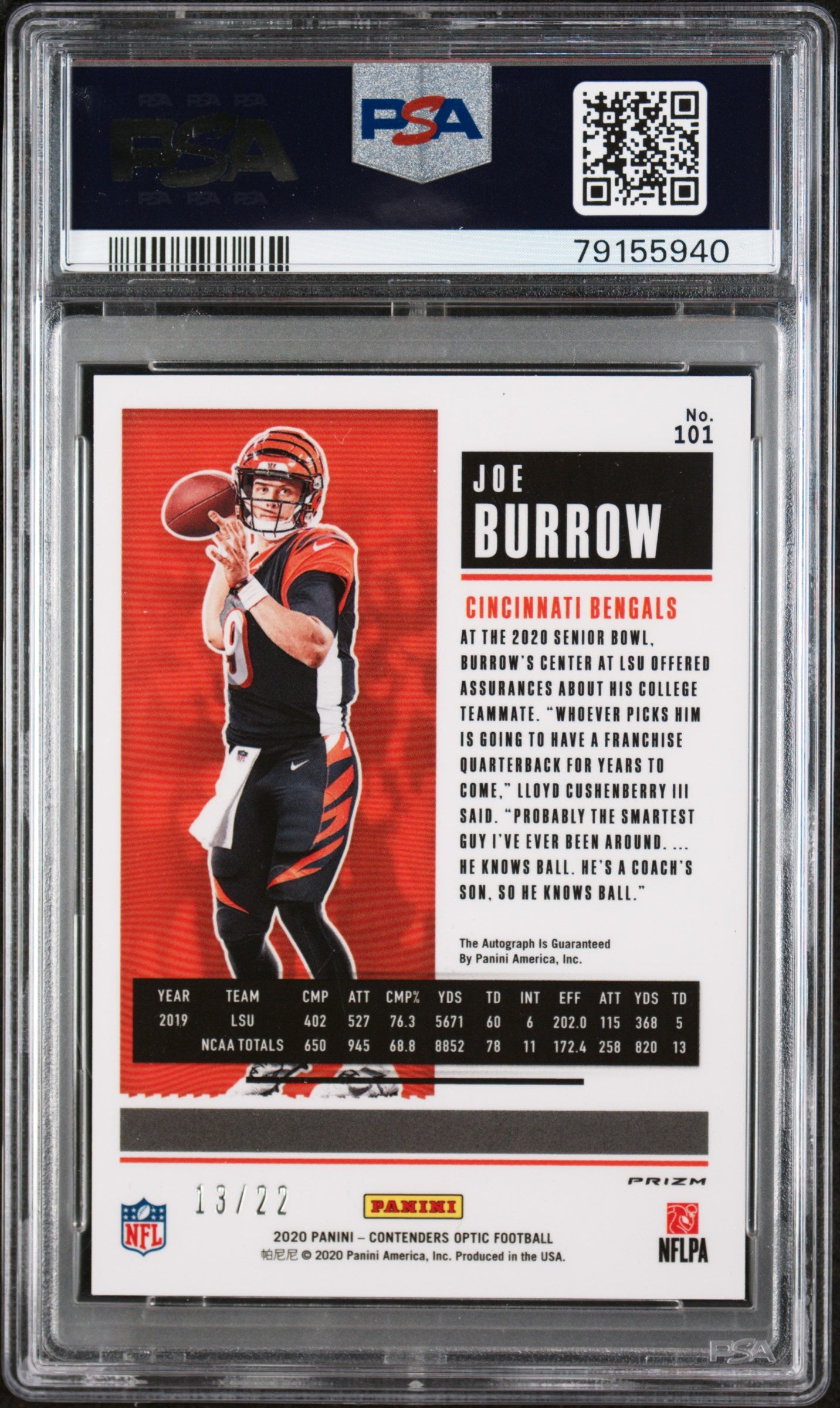 2020 Contenders Optic Joe Burrow #101 Rookie Cracked Ice #/22 Auto PSA 9